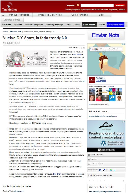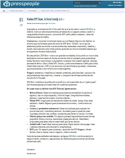 En nuestro Press Room encontrarás las apariciones de DIY Show en los medios de comunicación. Si eres un medio te lo ponemos fácil y en «material de prensa» encontrarás todo lo necesario para que puedas hablar muy muy bien de nosotras.