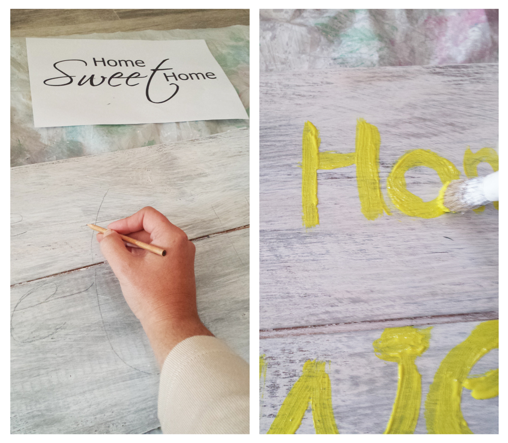 Trazamos en lápiz las letras y luego aplicamos la pintura